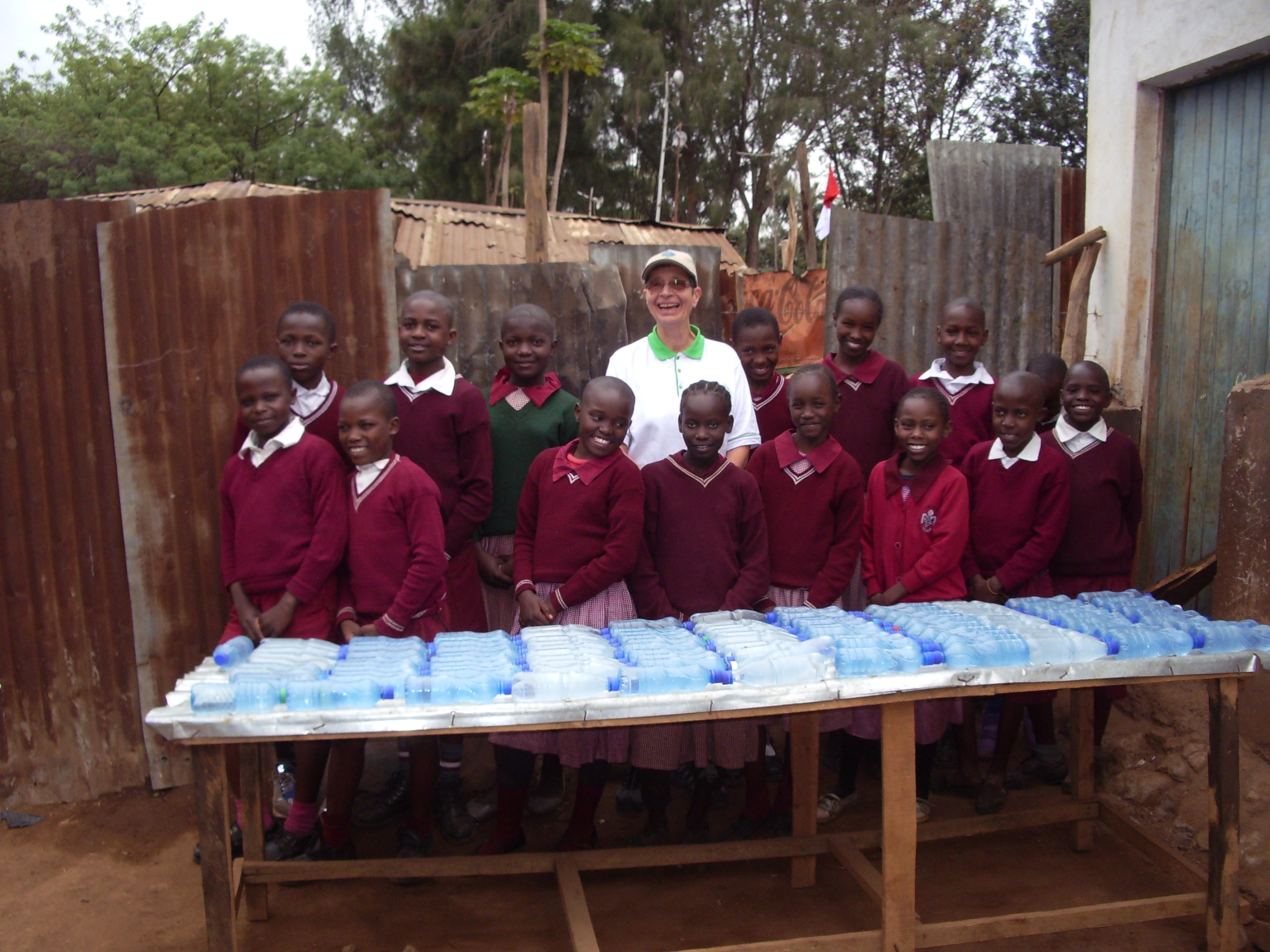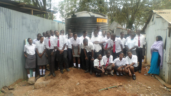 Schulklasse vor Wassertank